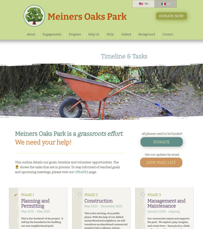 Meiners Oaks Parks is a grassroots effort by locals dedicated to creating a public park that benefits the residents and environment of Meiners Oaks and the greater Ojai Valley. The vision is to build a place to connect with our plant, animal and human neighbors, where young and young at heart can find joy and wonder in nature – right in our own neighborhood.