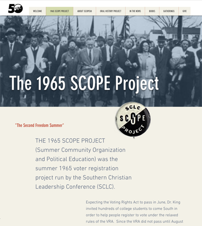 In 1965, young people answered Dr. Martin Luther King, Jr.’s call to spend their summer in the South registering black people to vote. That historic event was called The SCOPE Project (Summer Community Organization and Political Education). SCOPE50 was formed in 2015 during the 50th Anniversary of the SCOPE Project.